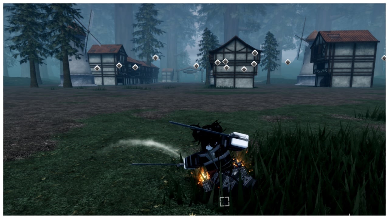 feature image for our attack on titan revolution memories tier which shows a corps member in black uniform skirting across the grass using her gear which has orange sparks spitting from it