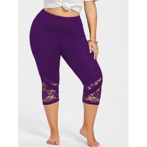 Plus Size Lace Trim Capri Leggings