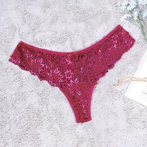 Red Floral Lace Detail Zip Front Closure Lace-up Corsets with T-thong