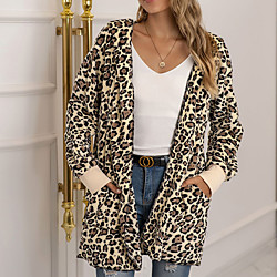 Women’s Coat Daily Fall Winter Regular Coat Regular Fit Warm Casual Jacket Long Sleeve Solid Color Leopard Quilted Print Yellow White Coffee Lightinthebox