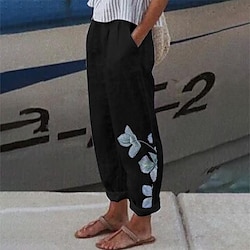 Women’s Wide Leg Trousers Chinos Pants Trousers Linen / Cotton Blend Black White Blue High Waist Fashion Casual Lounge Office Weekend Baggy Full Length Comfort Leaf S M L XL XXL Lightinthebox