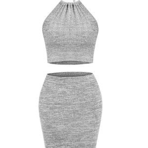 ZAFUL Heather Knitted Bodycon Skirt Set Xl Gray