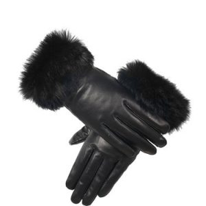 Casual Black Plain Angora Gloves