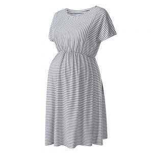 Casual Striped Long-sleeve Nursing Maxi Dress