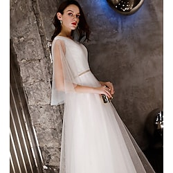 A-Line Minimalist Elegant Party Wear Prom Dress Off Shoulder Long Sleeve Floor Length Tulle with Appliques 2022 Lightinthebox