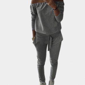 Grey Casual Off-shoulder Jumpsuit With Pockets