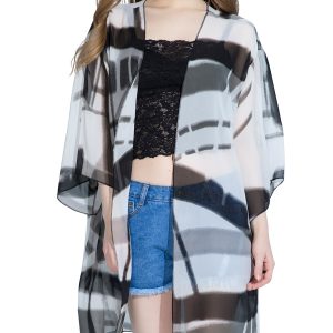 Hollow Out Extraordinary Printed Chiffon Kimono