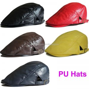 Adjustable DIY Blank Hats PU Leather Visor Cap Men's Berets Fashion Autumn Winter Beret Hats for Men