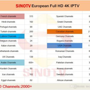 1 Year Sinotv Subscription French Germany Portugal Spanish Netherlands European 4K HD TV Channels UK USA Canada Bulgaria Indian IPTV M3U