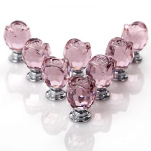 Wholesale- New 8 Pcs/Set Pink Rose Crystal Glass Door Knobs Kitchen Cabinet Drawer Handle 22MM with 8 x 20mm Door Handles and 8 x Screws