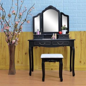 2021 Creative Nordic luxury fashionable Tri-fold Mirror Dresser with Dressing Stool Black Single Mirror Dressing Table Girl Makeup Table