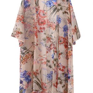 Vintage Floral Printed Chiffon Kimonos Cardigans For Women