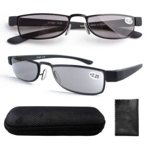 wholesale-r11007 stainless steel frame gray tinted lens plastic temple reading glasses w/case +1.0,1.25,1.5,1.75,2.0,2.25