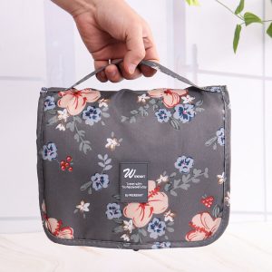 Woman’s Travel Makeup Cosmetic Bag Flamingo Cherr Pink Strip