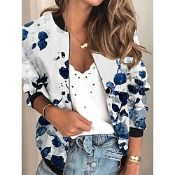 Women’s Casual Jacket Daily Holiday Going out Spring Summer Regular Coat Regular Fit Breathable Sporty Active Casual Jacket Long Sleeve 3D Print Floral Full Zip Print Blue Lightinthebox