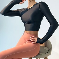 Women’s Crew Neck Yoga Top Crop Top Cropped Solid Color Purple Black Nylon Yoga Gym Workout Running Tee Tshirt Top Long Sleeve Sport Activewear Breathable Quick Dry Lightweight Stretchy Slim Lightinthebox