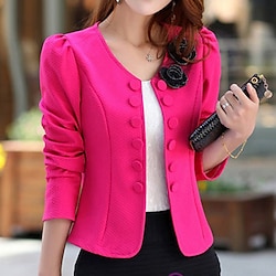 Women’s Blazer Solid Colored Cotton Blend Coat Tops Black / Blushing Pink / Khaki Lightinthebox