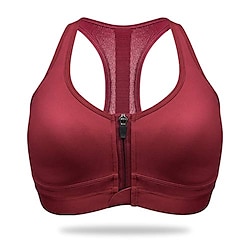 Women’s Front Closure Zip Sports Bra High Impact Racerback Wirefree Full Support Bra Bounce Control,Burgundy,34DD Lightinthebox