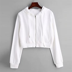 Women’s Casual Jacket Training Street Sport Spring Summer Short Coat Regular Fit Breathable Sporty Active Casual Jacket Long Sleeve Solid Color Full Zip White Black Wine Lightinthebox