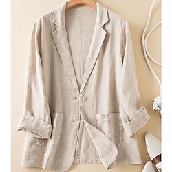 Women’s Blazer Office Plain Casual / Daily Simple Regular Fit Cotton Blend Linen Outerwear Long Sleeve Spring White M Lightinthebox