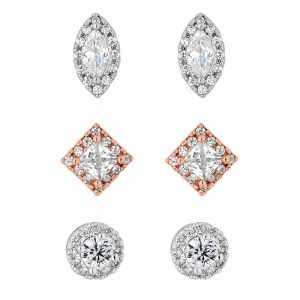 Silver Cubic Zirconia Round Synthetic Materials Earrings