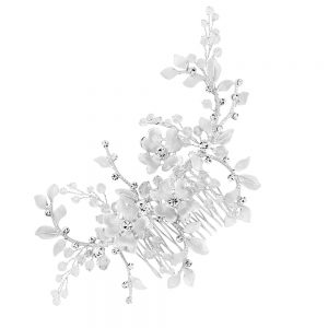 Silver Textured Leaf Beaded Hair Comb