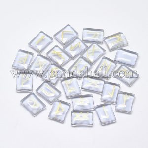 Spray Painted Glass Cabochons, Rectangle with Runes/Futhark/Futhorc, Lavender, 19~20×14~15×4.5~6mm; 25pcs/set