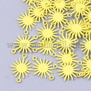 Spray Painted Iron Links/Connectors, Sun, Yellow, 18×13.5x1mm, Hole: 1mm
