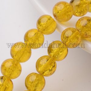 Spray Painted Crackle Glass Beads Strands, Round, Gold, 8mm; Hole: 1.3~1.6mm; about 100pcs/strand, 31.4″