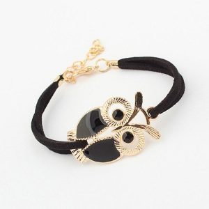Vintage Faux Suede Enamel Owl Charm Bracelet