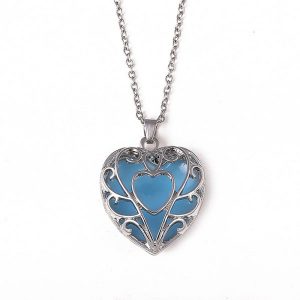 Women Girls Night Light Heart Pendants Necklace Diamond Metal Choker Fashion Jewelry