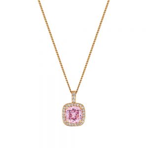 14ct Rose Gold Plated Sterling Silver 925 Pink Cubic Zirconia Square Halo Necklace