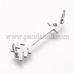 316 Stainless Steel Links, with Rhinestone, Arrow, Platinum, 26.5x7x1.5mm, Hole: 3.5mm