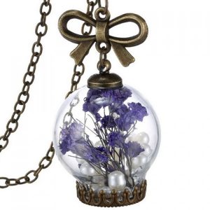 Graceful Faux Pearl Glass Dry Flower Bowknot Sweater Chain For Women
