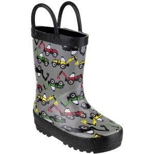 Cotswold Boys Puddle Patterned Rubber Welly Wellington Boot Grey
