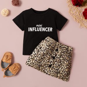 2-piece Baby MINI INFLUENCER Print Top and Leopard Print Skirt