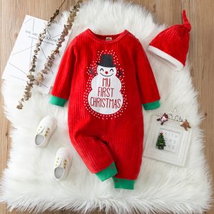 2-piece Baby Christmas Snowman Jumpsuit and Hat