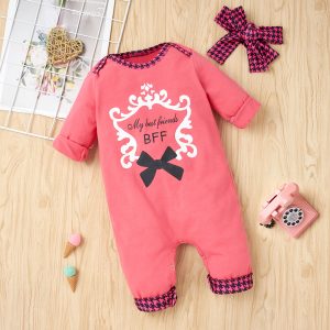 2-piece Baby Sweet Floral Heart Jumpsuit and Headband