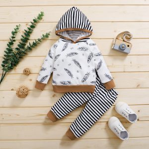 2pcs Baby Unisex casual Hand painted Baby’s Sets Fashion Cute Infant Clothes Hooded Outfit Clothing