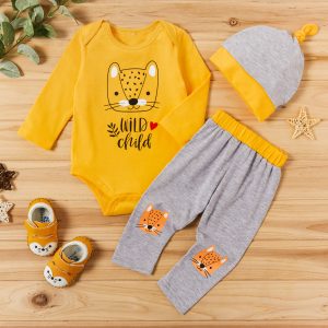 3-piece Baby WILD CHILD Tiger Print Romper and Pants with Hat Set