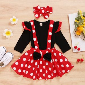 3-pcs Baby Girl Polka Dot Sweet Suit-dress Cute Sweet NEW Newborn Infant Baby Girls Kids Winter Dress Long Sleeve Cotton Bow Dress Outfits Party
