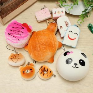 10Pcs Kawaii Squishy Soft Toy Sushi Panda Bread Cake Buns Phone Straps