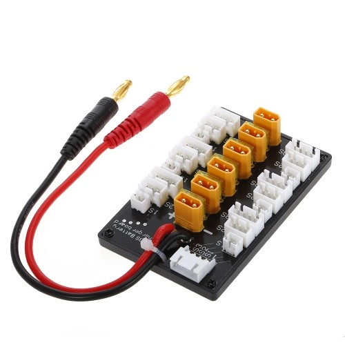 Features: Support 6 packs XT30 / 1S / 2S or 3S LiPo batteries balance charge. Thicken PCB copper foil, allow security using 20A charging current. Balanced port output line with 18AWG multi-strand silicone line. Equipped with 20A fuse protection between any two groups of batteries, to handle the largebattery pressure. This ParaBoard can be used for batteries with JST-XH type balance plug (the most populartype in the market) and XT30 connectors.