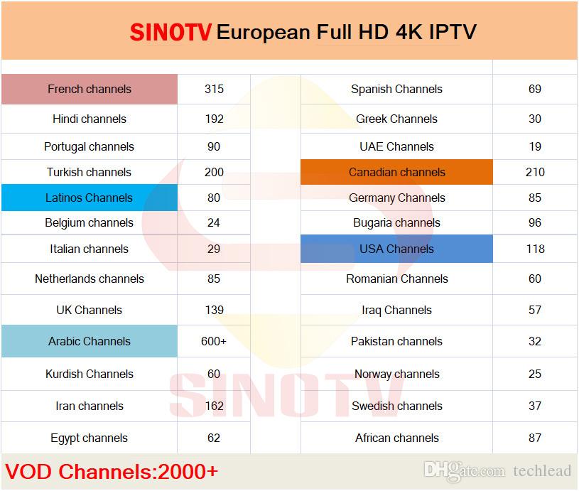 SINOTV Abonnement French Europe English Germany Holland India channel package Arabic Programme UK USA Canada Turkish TV Subscription