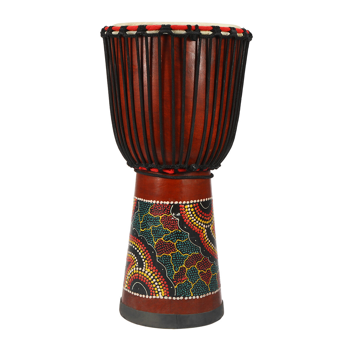nullSpecification:Material:One piece of MahoganyDrumhead:Natural Goat Skin’Size:10″Height:50cmDiamater of drumhead:22cmOrigin:IndonesiaPattern:HandmadeSelect the type,(Colored Drawing/Carving).Color and logo may vary, randomly sentFeature :Traditional African Musical InstrumentEasy to PlayMakes a Great SoundFun to UseGreat starter drumA real money saver for music lovers. Bring the rhythm of Africa to life with these authentic miniature djembe drums. These are exceptional home decorations and great for kids as well. These drums are handmade and vary a bit in size.Please note that each drum is Handmade , and sizes will tend to slightly fluctuate. No two drums are exactly alike which makes each one a unique work of art.Package Included:1x Mahogany African Style Hand Drum1x Hand Bell1x Shoulder Strap