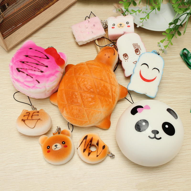 Description:These lovely bread cell phone decorations are mostly used for decorating your phone or your pad, bags, home and so on.They are not only beautiful but also practical.Feature:These pretty breads are made of high quality material.A variety of shapes, bread, cookies, toast, donuts, are very cute shapeYou will feel comfortable and content with it.The smelling of this decoration bread are so good that you may feel a little hungry with it.So you can not help attracting to it.Buy for your child as presents is also a good idea.Material: PUQuantity: 3pcs jumbo, 7pcs smallApprox. Diameter: minimum 3cm, maximum 8.5cmPatternColor: colorful, randomAll of them are very soft.Some of them are slow rising.Package Included:3 X Random Jumbo Squishy7 X Random Small Squishy