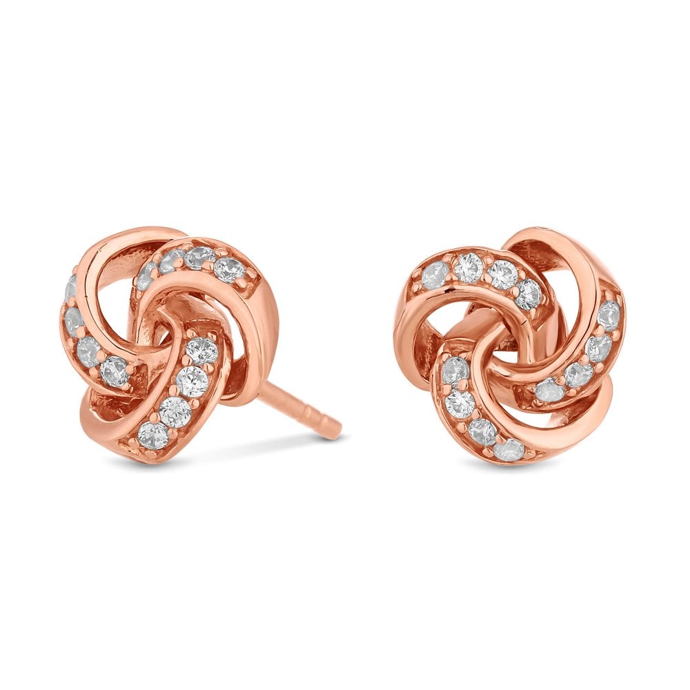 14ct Rose Gold Plated Sterling Silver 925 Cubic Zirconia Knot Stud Earring