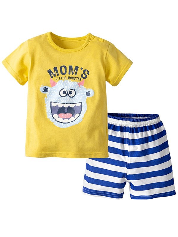 19F124F Summer Europe America Home Service Boy T-shirt Shorts 2pcs