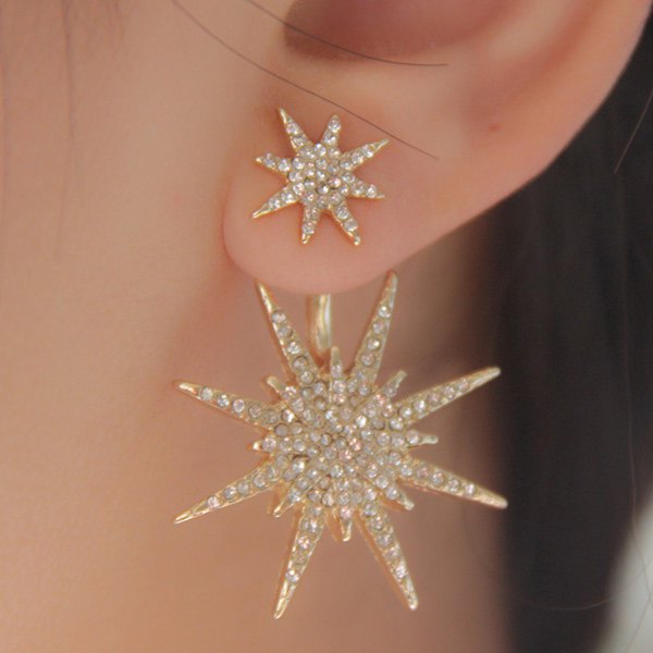 1PC Rhinestone Double Star Earring