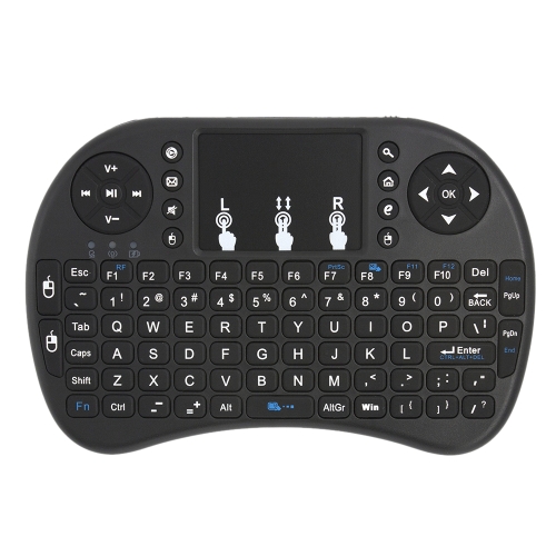 Features: [2 in 1 Multifunctional Combo] A 2.4GHz wireless mini QWERTY keyboard and TouchPad combo enables you control your devices on your couch. [2.4GHz Wireless Connection] With included USB interface adapter, no driver needed, plug and play. 2.4GHz wireless connection, enjoy up to 10 meters wireless control. [High Sensitive Touchpad] Easy to operate left mouse (single finger tap), right mouse (two-finger tap) and rolling screen (two fingers drag). Touchpad DPI adjustable functions. [92 Keys Keyboard] Consists of normal wireless keyboard keys, multimedia control keys and PC gaming control keys. The keyboard also features auto sleep and auto wake mode. [Widely Used] Compatible with Android, Windows and Linux OS. Suitable for Laptop, Notebook, PC, Smart TV, Android TV Box, projector and so on.